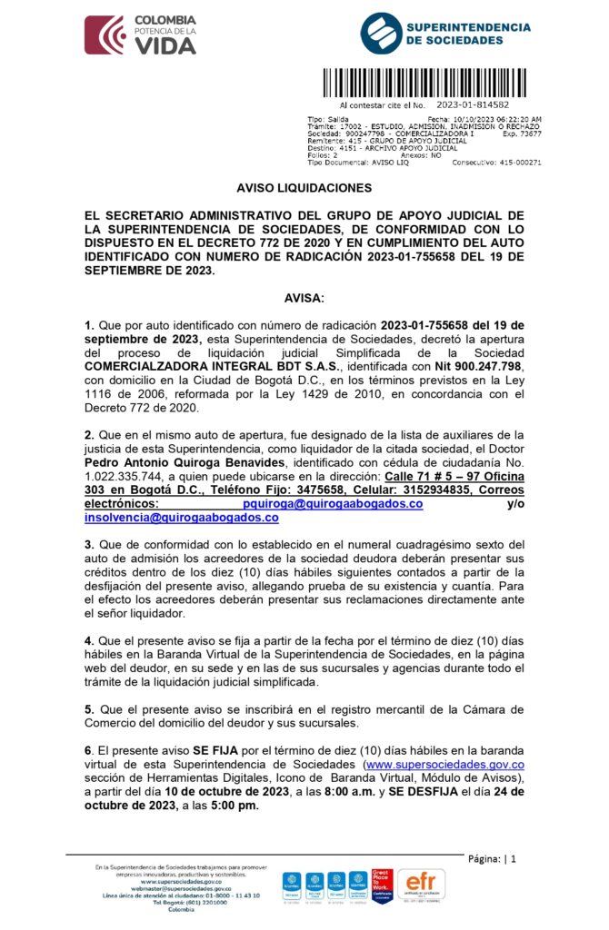 2023-01-814582 AVISO LIQUIDACIÓN